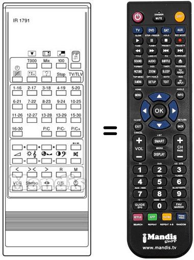 Comandament a distància que substitueix el comandament IR 1791 en totes les seves funcions.