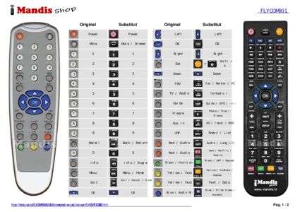 A continuació, us mostrarem la correspondència entre cada un dels botons del comandament original i el botó que realitza la mateixa funció en el comandament de substitució. En alguns casos, és possible que necessiti prémer la tecla SHIFT abans de prémer un altre botó per realitzar certes accions. Aquestes funcions addicionals sovint no s'utilitzen gaire i s'inclouen per facilitar la comprensió del comandament de substitució, o perquè el comandament original té més botons que el seu equivalent.
