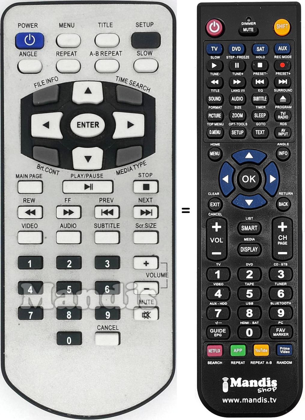 Comandament a distància que substitueix a l'original en totes les seves funcions.