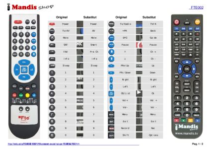 Aquest comandament a distància substitueix completament el teu FTE002 en totes les seves funcions. No és un comandament universal, sinó una còpia exacta del teu original.