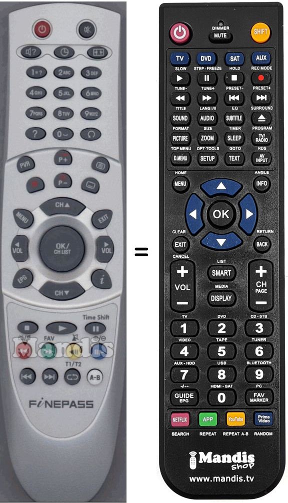 Comandament a distància que substitueix el comandament FSR-5000TDR en totes les seves funcions.