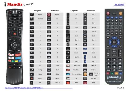 Aquest comandament a distància substitueix completament el teu RC4390P (30101765) en totes les seves funcions. No és un comandament universal, sinó una còpia exacta del teu original.