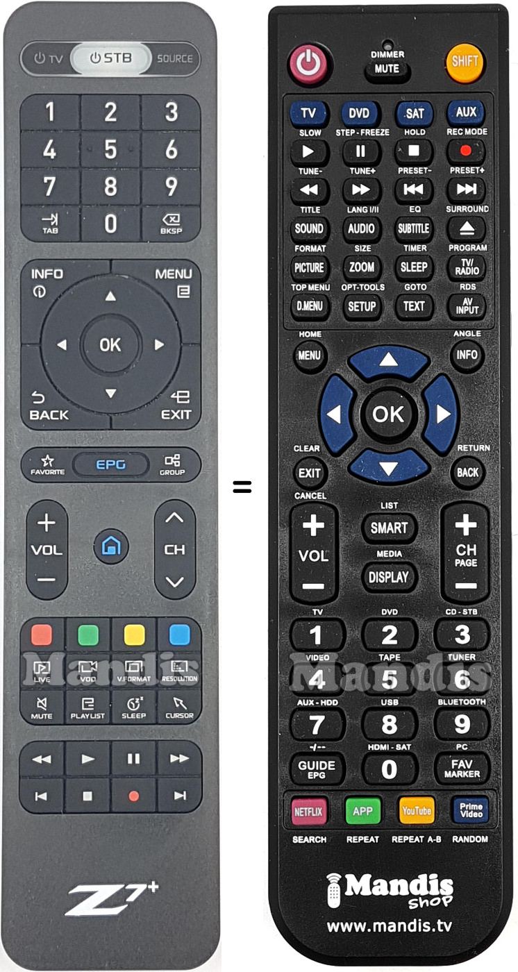 Aquest comandament a distància substitueix completament el teu Z7+ (Z7Plus) en totes les seves funcions. No és un comandament universal, sinó una còpia exacta del teu original.