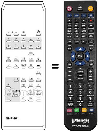 Comandament a distància que substitueix el comandament SHP 401 en totes les seves funcions.