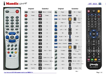 Aquest comandament a distància substitueix completament el teu ORT8820 en totes les seves funcions. No és un comandament universal, sinó una còpia exacta del teu original.
