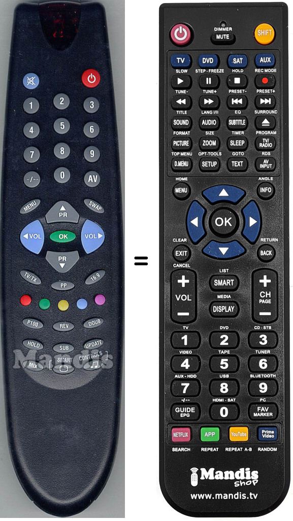 Comandament a distància que substitueix a l'original en totes les seves funcions.