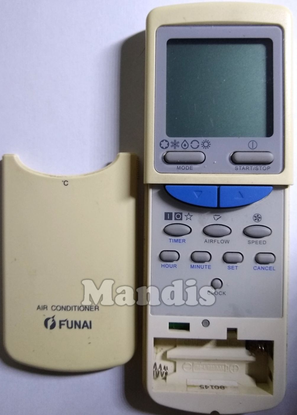 Comandament a distància original FUNAI001 que serveix per aires condicionats de la marca Funai. Es tracta d'un model original de comandament a distància.