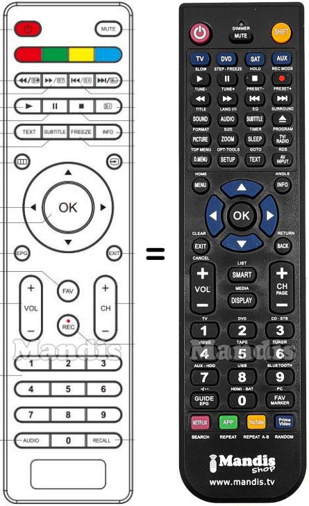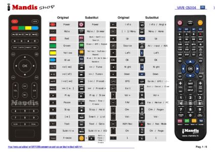 A continuació, us mostrarem la correspondència entre cada un dels botons del comandament original i el botó que realitza la mateixa funció en el comandament de substitució. En alguns casos, és possible que necessiti prémer la tecla SHIFT abans de prémer un altre botó per realitzar certes accions. Aquestes funcions addicionals sovint no s'utilitzen gaire i s'inclouen per facilitar la comprensió del comandament de substitució, o perquè el comandament original té més botons que el seu equivalent.