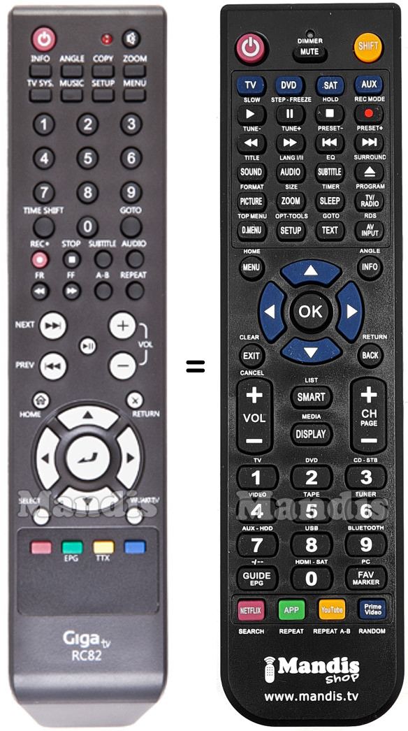 Aquest comandament a distància substitueix completament el teu RC82 en totes les seves funcions. No és un comandament universal, sinó una còpia exacta del teu original.