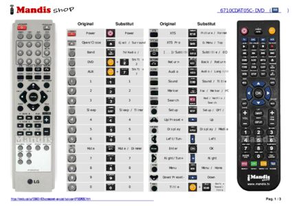 Aquest comandament a distància substitueix completament el teu 6710CDAT05C en totes les seves funcions. No és un comandament universal, sinó una còpia exacta del teu original.