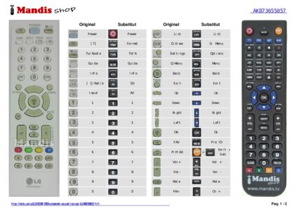 Aquest comandament a distància substitueix completament el teu AKB 73655837 en totes les seves funcions. No és un comandament universal, sinó una còpia exacta del teu original.