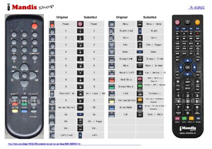 Aquest comandament a distància substitueix completament el teu R-40A01 en totes les seves funcions. No és un comandament universal, sinó una còpia exacta del teu original.