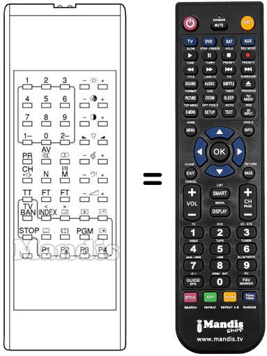 Comandament a distància que substitueix el comandament TPG 704 en totes les seves funcions.