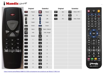 A continuació, us mostrarem la correspondència entre cada un dels botons del comandament original i el botó que realitza la mateixa funció en el comandament de substitució. En alguns casos, és possible que necessiti prémer la tecla SHIFT abans de prémer un altre botó per realitzar certes accions. Aquestes funcions addicionals sovint no s'utilitzen gaire i s'inclouen per facilitar la comprensió del comandament de substitució, o perquè el comandament original té més botons que el seu equivalent.