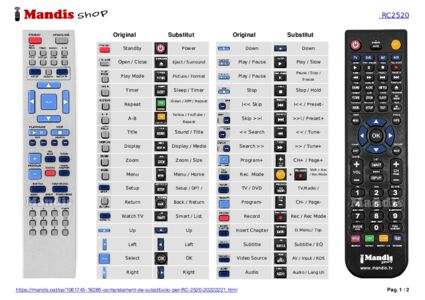 Aquest comandament a distància substitueix completament el teu RC2523 (20153536) en totes les seves funcions. No és un comandament universal, sinó una còpia exacta del teu original.