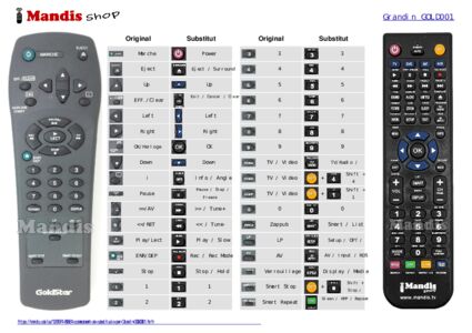 A continuació, us mostrarem la correspondència entre cada un dels botons del comandament original i el botó que realitza la mateixa funció en el comandament de substitució. En alguns casos, és possible que necessiti prémer la tecla SHIFT abans de prémer un altre botó per realitzar certes accions. Aquestes funcions addicionals sovint no s'utilitzen gaire i s'inclouen per facilitar la comprensió del comandament de substitució, o perquè el comandament original té més botons que el seu equivalent.