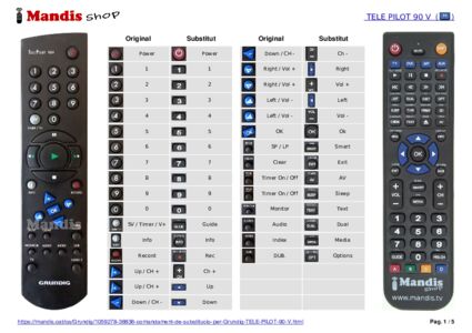 A continuació, us mostrarem la correspondència entre cada un dels botons del comandament original i el botó que realitza la mateixa funció en el comandament de substitució. En alguns casos, és possible que necessiti prémer la tecla SHIFT abans de prémer un altre botó per realitzar certes accions. Aquestes funcions addicionals sovint no s'utilitzen gaire i s'inclouen per facilitar la comprensió del comandament de substitució, o perquè el comandament original té més botons que el seu equivalent.