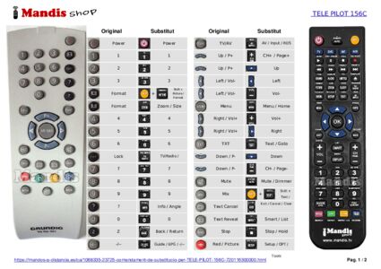 Aquest comandament a distància substitueix completament el teu TELE PILOT 156C 2 en totes les seves funcions. No és un comandament universal, sinó una còpia exacta del teu original.