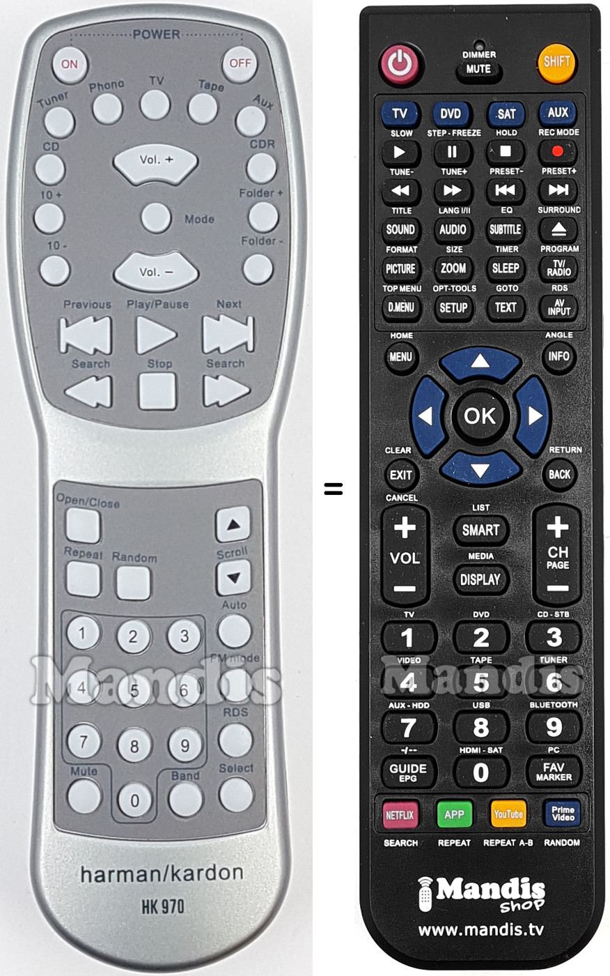 Aquest comandament a distància substitueix completament el teu HK970 en totes les seves funcions. No és un comandament universal, sinó una còpia exacta del teu original.