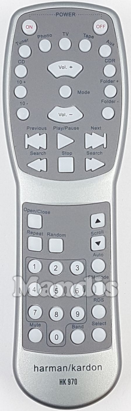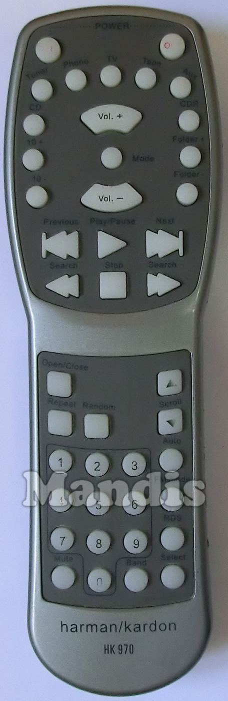 Comandament a distància original HK970 de la marca HARMAN KARDON. Es tracta d'un model original de comandament a distància.