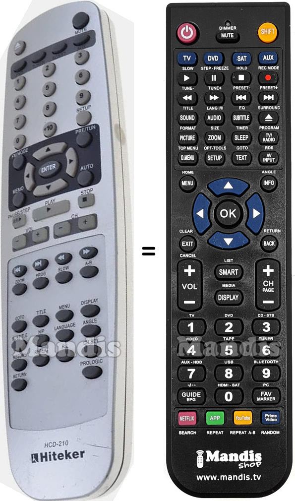 Aquest comandament a distància substitueix completament el teu HCD-210 en totes les seves funcions. No és un comandament universal, sinó una còpia exacta del teu original.