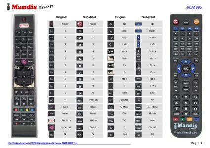 Aquest comandament a distància substitueix completament el teu RCA4995 (30092062) en totes les seves funcions. No és un comandament universal, sinó una còpia exacta del teu original.