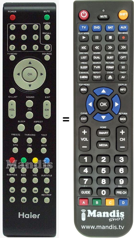 A continuació, us mostrarem la correspondència entre cada un dels botons del comandament original i el botó que realitza la mateixa funció en el comandament de substitució. En alguns casos, és possible que necessiti prémer la tecla SHIFT abans de prémer un altre botó per realitzar certes accions. Aquestes funcions addicionals sovint no s'utilitzen gaire i s'inclouen per facilitar la comprensió del comandament de substitució, o perquè el comandament original té més botons que el seu equivalent.