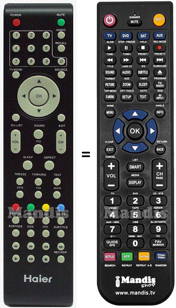 A continuació, us mostrarem la correspondència entre cada un dels botons del comandament original i el botó que realitza la mateixa funció en el comandament de substitució. En alguns casos, és possible que necessiti prémer la tecla SHIFT abans de prémer un altre botó per realitzar certes accions. Aquestes funcions addicionals sovint no s'utilitzen gaire i s'inclouen per facilitar la comprensió del comandament de substitució, o perquè el comandament original té més botons que el seu equivalent.
