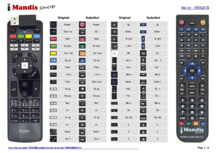 A continuació, us mostrarem la correspondència entre cada un dels botons del comandament original i el botó que realitza la mateixa funció en el comandament de substitució. En alguns casos, és possible que necessiti prémer la tecla SHIFT abans de prémer un altre botó per realitzar certes accions. Aquestes funcions addicionals sovint no s'utilitzen gaire i s'inclouen per facilitar la comprensió del comandament de substitució, o perquè el comandament original té més botons que el seu equivalent.