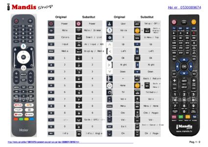 A continuació, us mostrarem la correspondència entre cada un dels botons del comandament original i el botó que realitza la mateixa funció en el comandament de substitució. En alguns casos, és possible que necessiti prémer la tecla SHIFT abans de prémer un altre botó per realitzar certes accions. Aquestes funcions addicionals sovint no s'utilitzen gaire i s'inclouen per facilitar la comprensió del comandament de substitució, o perquè el comandament original té més botons que el seu equivalent.