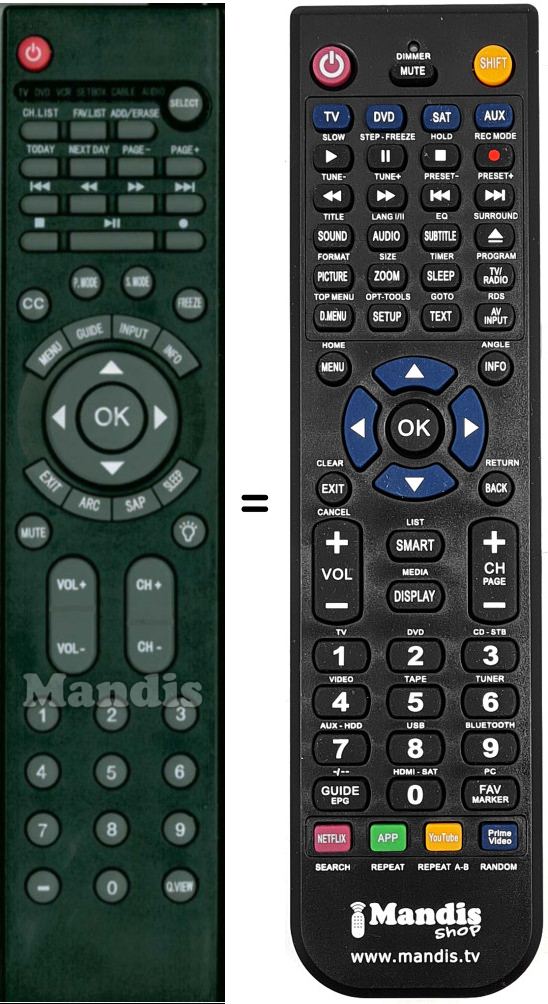 Comandament a distància que substitueix a l'original en totes les seves funcions. No es tracta d'un comandament universal sinó d'una còpia que substitueix l'original. Rebrà el comandament completament preparat per fer-lo funcionar només necessita posar-li les piles. No cal programar-lo. Té total garantia de que el comandament cumplirà amb les mateixes funcions de l'original.