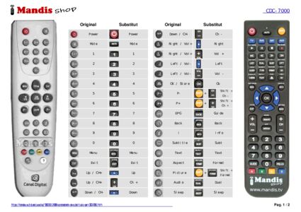 A continuació, us mostrarem la correspondència entre cada un dels botons del comandament original i el botó que realitza la mateixa funció en el comandament de substitució. En alguns casos, és possible que necessiti prémer la tecla SHIFT abans de prémer un altre botó per realitzar certes accions. Aquestes funcions addicionals sovint no s'utilitzen gaire i s'inclouen per facilitar la comprensió del comandament de substitució, o perquè el comandament original té més botons que el seu equivalent.