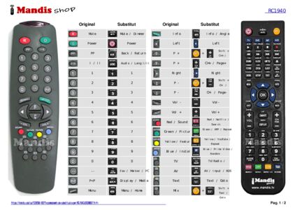 S'inclou un document amb la correspondència dels botons del nou comandament a distància per facilitar el seu ús.