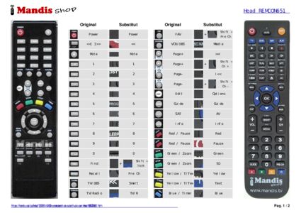A continuació, us mostrarem la correspondència entre cada un dels botons del comandament original i el botó que realitza la mateixa funció en el comandament de substitució. En alguns casos, és possible que necessiti prémer la tecla SHIFT abans de prémer un altre botó per realitzar certes accions. Aquestes funcions addicionals sovint no s'utilitzen gaire i s'inclouen per facilitar la comprensió del comandament de substitució, o perquè el comandament original té més botons que el seu equivalent.