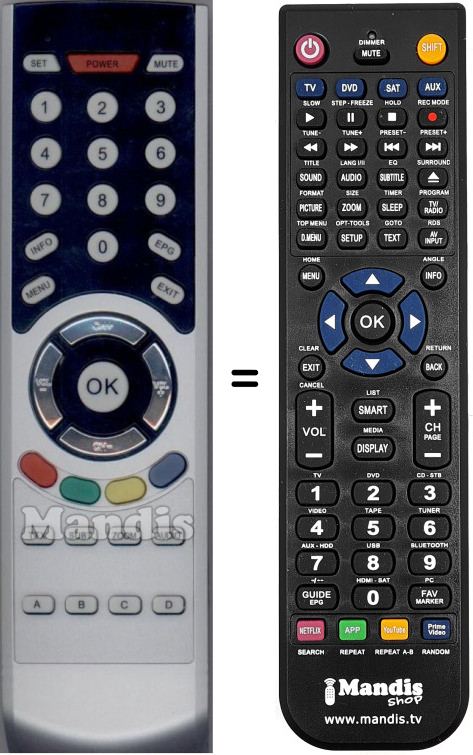 Comandament a distància que substitueix a l'original en totes les seves funcions.