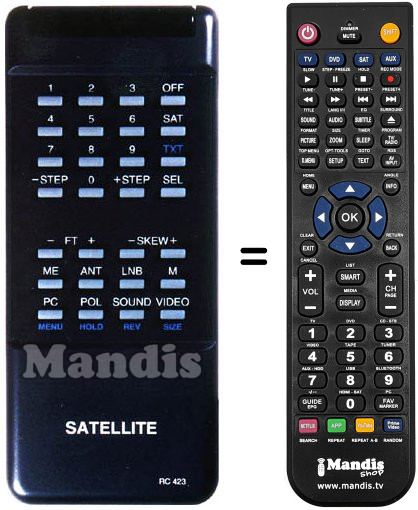 Comandament a distància que substitueix el comandament RC423 en totes les seves funcions.