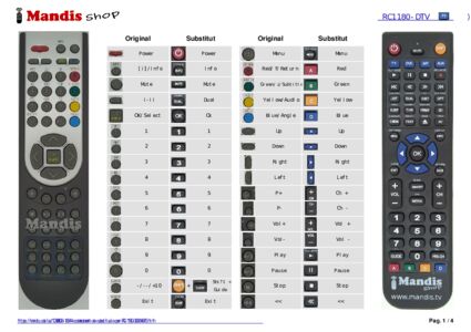 A continuació, us mostrarem la correspondència entre cada un dels botons del comandament original i el botó que realitza la mateixa funció en el comandament de substitució. En alguns casos, és possible que necessiti prémer la tecla SHIFT abans de prémer un altre botó per realitzar certes accions. Aquestes funcions addicionals sovint no s'utilitzen gaire i s'inclouen per facilitar la comprensió del comandament de substitució, o perquè el comandament original té més botons que el seu equivalent.