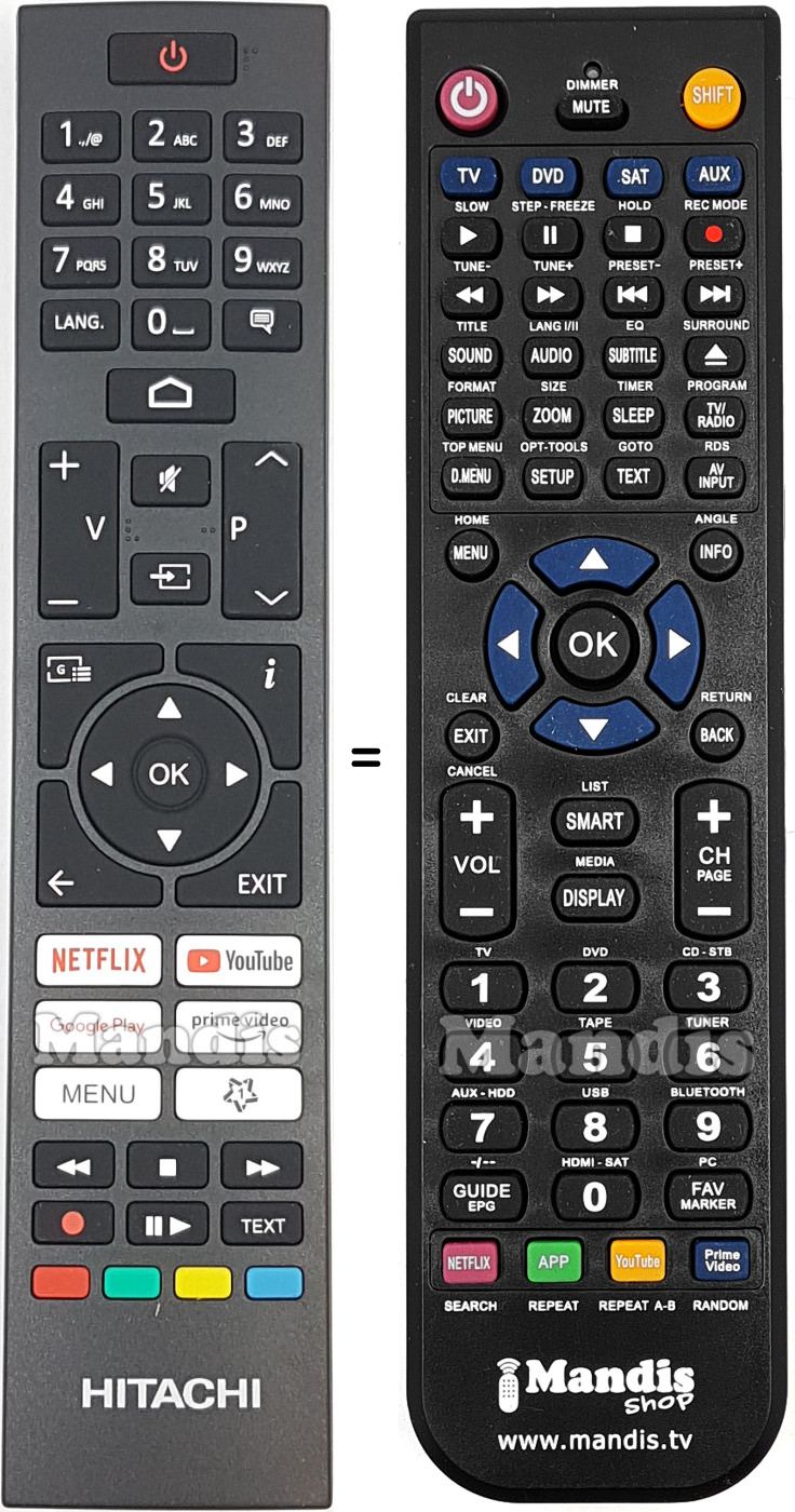 A continuació, us mostrarem la correspondència entre cada un dels botons del comandament original i el botó que realitza la mateixa funció en el comandament de substitució. En alguns casos, és possible que necessiti prémer la tecla SHIFT abans de prémer un altre botó per realitzar certes accions. Aquestes funcions addicionals sovint no s'utilitzen gaire i s'inclouen per facilitar la comprensió del comandament de substitució, o perquè el comandament original té més botons que el seu equivalent.