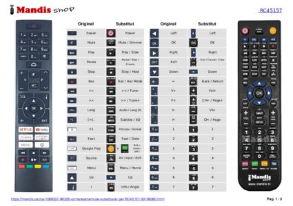 Aquest comandament a distància substitueix completament el teu RC45157 (23799042) en totes les seves funcions. No és un comandament universal, sinó una còpia exacta del teu original.