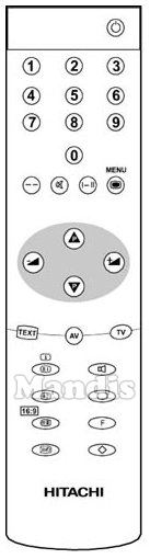 Comandament a distància original REMCON1383 que serveix per televisors de la marca Hitachi. Es tracta d'un model original de comandament a distància.