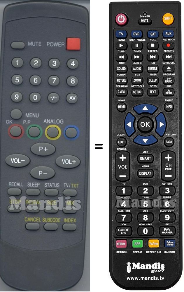 Aquest comandament a distància substitueix completament el teu 14CX7 en totes les seves funcions. No és un comandament universal, sinó una còpia exacta del teu original.