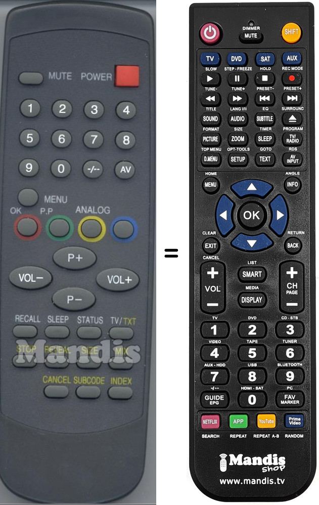 Comandament a distància que substitueix a l'original en totes les seves funcions.
