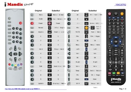 Aquest comandament a distància substitueix completament el teu Y96187R2 (GNJ0147) en totes les seves funcions. No és un comandament universal, sinó una còpia exacta del teu original.