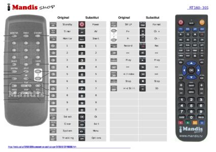 A continuació, us mostrarem la correspondència entre cada un dels botons del comandament original i el botó que realitza la mateixa funció en el comandament de substitució. En alguns casos, és possible que necessiti prémer la tecla SHIFT abans de prémer un altre botó per realitzar certes accions. Aquestes funcions addicionals sovint no s'utilitzen gaire i s'inclouen per facilitar la comprensió del comandament de substitució, o perquè el comandament original té més botons que el seu equivalent.