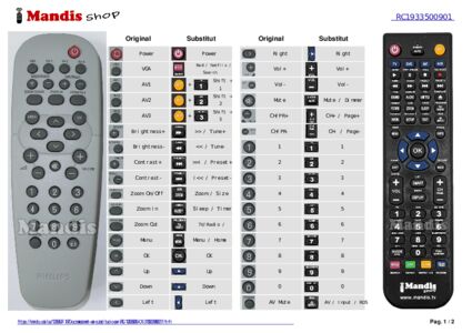 A continuació, us mostrarem la correspondència entre cada un dels botons del comandament original i el botó que realitza la mateixa funció en el comandament de substitució. En alguns casos, és possible que necessiti prémer la tecla SHIFT abans de prémer un altre botó per realitzar certes accions. Aquestes funcions addicionals sovint no s'utilitzen gaire i s'inclouen per facilitar la comprensió del comandament de substitució, o perquè el comandament original té més botons que el seu equivalent.