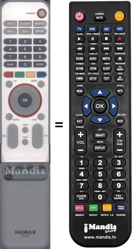 Comandament a distància que substitueix a l'original en totes les seves funcions.