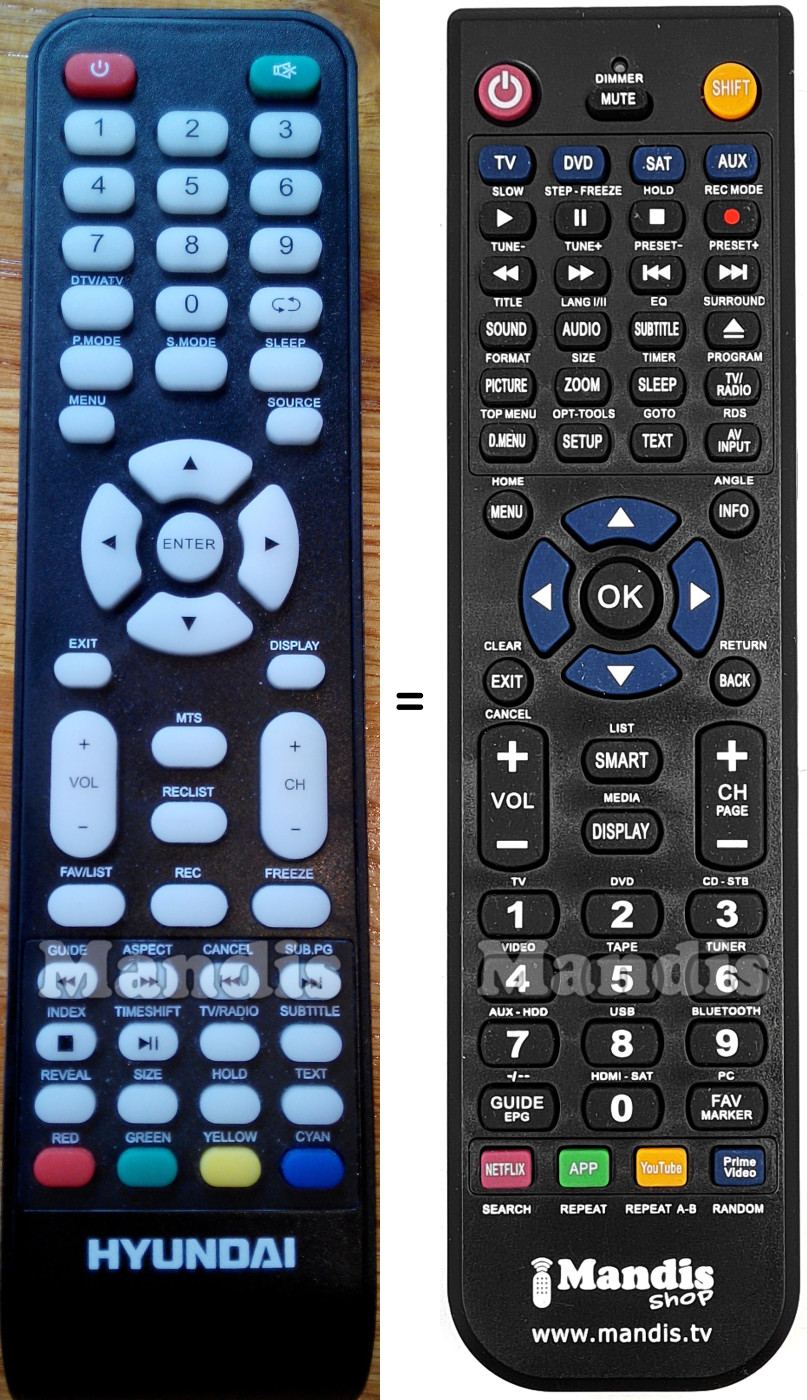 A continuació, us mostrarem la correspondència entre cada un dels botons del comandament original i el botó que realitza la mateixa funció en el comandament de substitució. En alguns casos, és possible que necessiti prémer la tecla SHIFT abans de prémer un altre botó per realitzar certes accions. Aquestes funcions addicionals sovint no s'utilitzen gaire i s'inclouen per facilitar la comprensió del comandament de substitució, o perquè el comandament original té més botons que el seu equivalent.