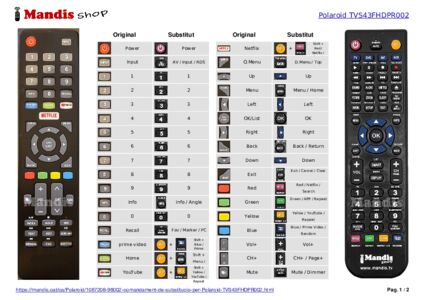 A continuació, us mostrarem la correspondència entre cada un dels botons del comandament original i el botó que realitza la mateixa funció en el comandament de substitució. En alguns casos, és possible que necessiti prémer la tecla SHIFT abans de prémer un altre botó per realitzar certes accions. Aquestes funcions addicionals sovint no s'utilitzen gaire i s'inclouen per facilitar la comprensió del comandament de substitució, o perquè el comandament original té més botons que el seu equivalent.