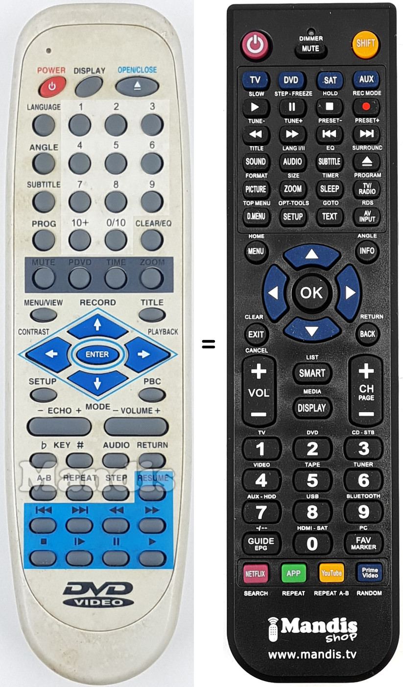 Comandament a distància que substitueix el comandament JX-2006A en totes les seves funcions.
