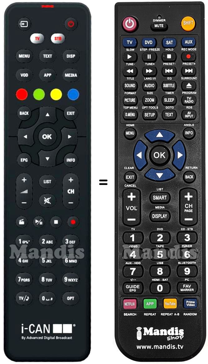 Comandament a distància equivalent I-CAN STRONG004Disponible en stock16,94 € (IVA inclòs)I-CANPer ADT-1 H 6 F-TCL, I-CAN, I-CAN 3000 T, INTERACTI-MHP, ADT-1H6F-TCL, I-CAN, I-CAN3000T, DTI 3800, 5002, DT 5200, DT 5300, ...